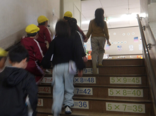 広い学校の中を案内してもいワクワクな年長ぐみさん♩